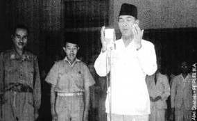 Soekarno: Tuan-tuan, banyak terimakasih atas kepercayaan tuan-tuan dan dengan ini saya dipilih oleh tuan-tuan dengan suara bulat rnenjadi Presiden Republik lndonesia. (Tepuk tagan).