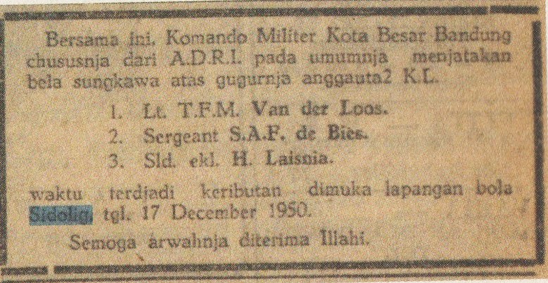 Tak perlu jauh-jauh ke Amerika Selatan untuk mempelajari arti “voetbal is oorlog” yang membuat Honduras dan El Salvador berperang, cukup tengok hal yang menggemparkan masyarakat Kota Bandung pada tanggal 17 Desember 1950. Saat di mana lima orang tewas dan puluhan lainnya terluka akibat baku tembak antara Angkatan Perang Republik Indonesia (APRI, cikal bakal TNI) dan Koninklijke Leger (KL) Belanda. Penyebabnya? Sepak bola!